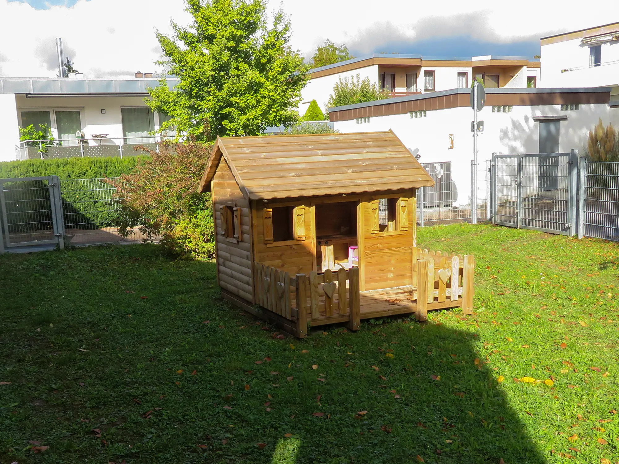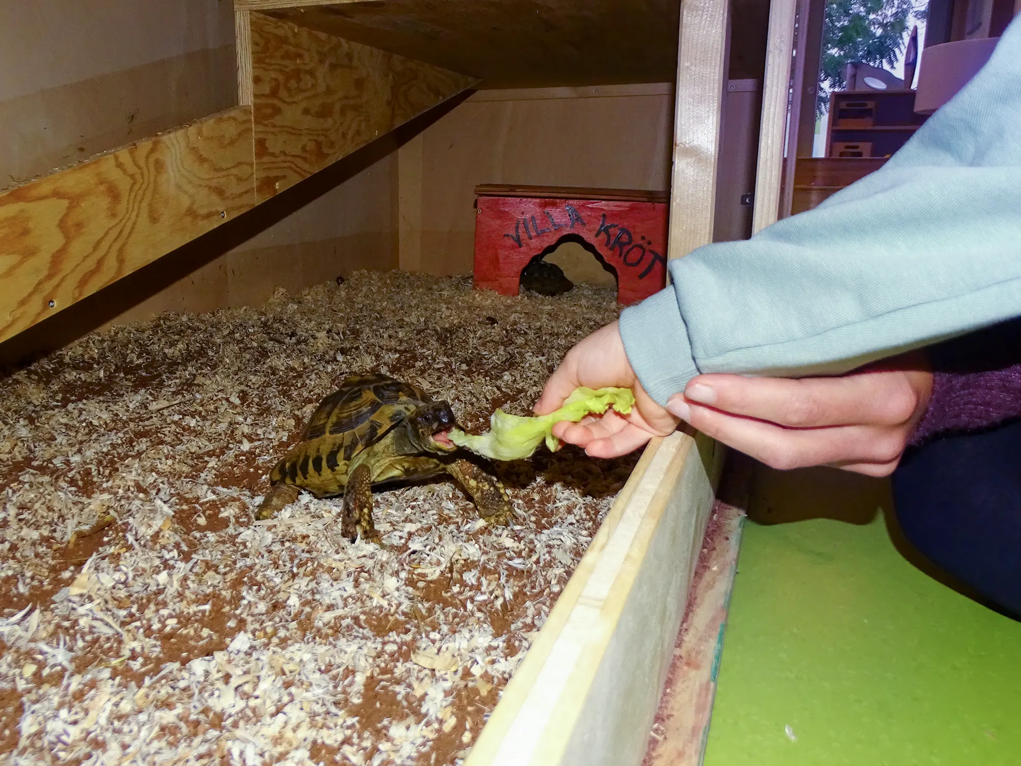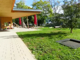 In unserem großen Garten mit Sandkasten, Wasserspieltisch, Nestschaukel, Trampolin und großer Wiesenfläche haben die Kinder die Möglichkeit, die Natur zu erkunden. Die beiden Schildkröten Momo und Panzer verbringen den Frühling und den Sommer in der Riedstraße und werden von den Kindern begeistert umsorgt und beobachtet.